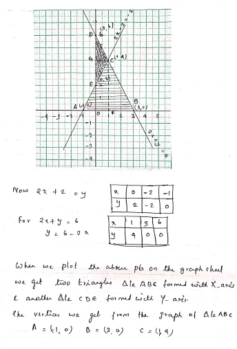 Solve Graphically The Pair Of Equation 2x Y 6 And 2x Y 2 0 Find The Ratio Of The Areas Of The Two Triangles Formed By The Lines Representing These Equation With X Axis And The Lines With